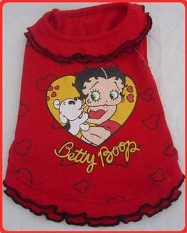 Give your pup some Betty Boop attitude with this ultra-cute ruffle dress! Featuring an allover heart print and a ruffled collar, this dress will have your pup looking stylish and feeling comfy. Turn heads and break hearts with Betty Boop!