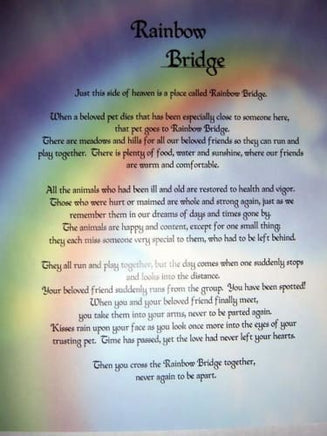 The Rainbow Bridge Memorial is 8.5 inches X 11 inches.