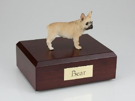 This urn comes with a Tan French Bulldog which can be attached to our beautiful wood urn bases with glue.